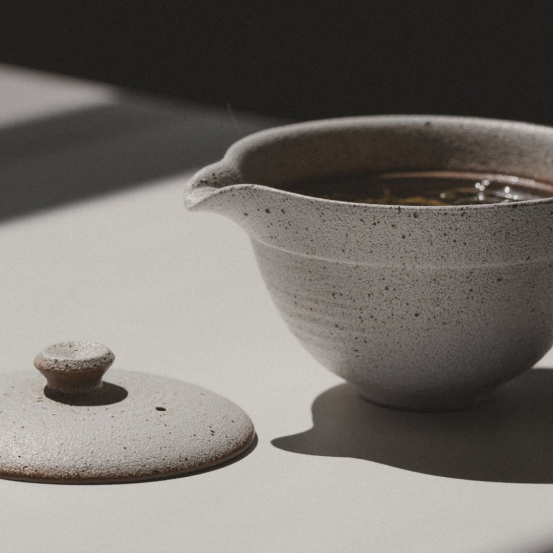 Poiché la teiera è composta solo da un coperchio e una base, naturalmente ci sono alcune somiglianze tra il tokoname < a href="/blogs/japanese-teaware/shiboridashi-vs-gaiwan" target="_blank" title="Impara le differenze tra Shiboridashi e Gaiwan">Shiboridashi e Gaiwan. Una delle differenze principali è che con il gaiwan è necessario posizionare il coperchio leggermente inclinato per creare uno spazio che consenta all'acqua di fluire, ma che trattenga le foglie. Con il tokoname shiboridashi, lo spazio verso il beccuccio è già presente, permettendogli di versare il tè in modo uniforme.