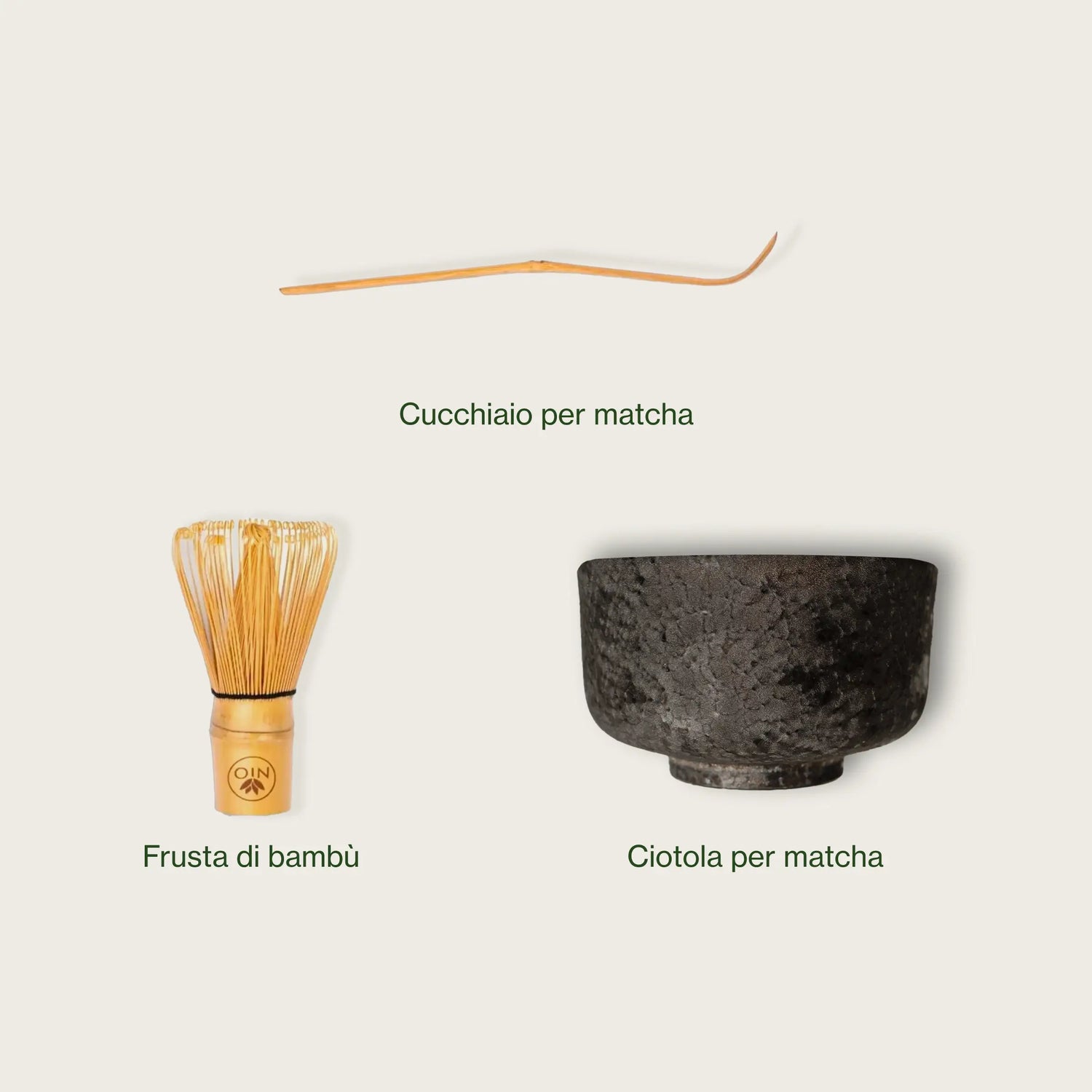 Con questo speciale set di matcha, riceverete una frusta per matcha, un cucchiaio per matcha e una scelta tra diverse ciotole per matcha! Ottenete tutto il necessario per creare la cerimonia del tè perfetta a casa vostra e godetevi un'esperienza rilassante e trasformativa!